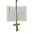 Croce Tau di San Francesco d'Assisi in legno d'ulivo con preghiera. Fornito con cordoncino in stoffa marrone con i tre famosi nodi francescani, simbolo delle tre regole francescane: Povertà, Castità e Obbedienza.Altezza della croce: 4 cm. Realizzato in Italia.