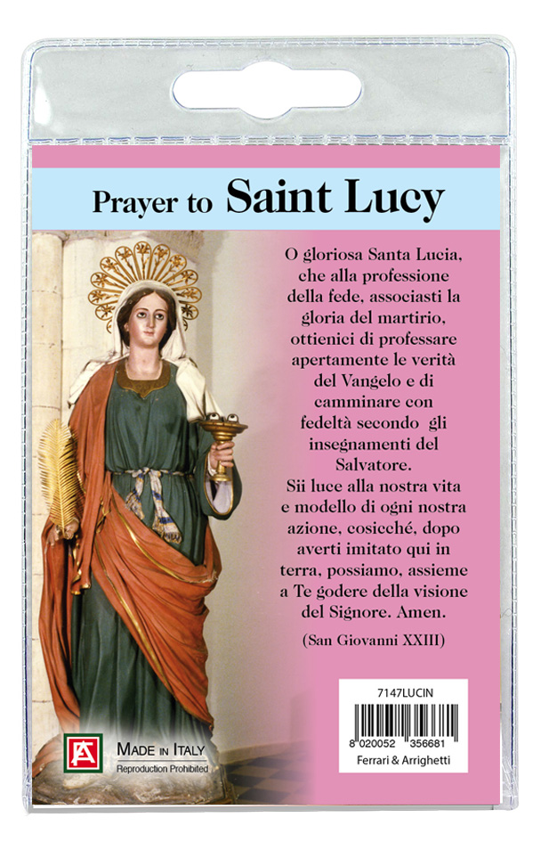 Portachiavi doppio Santa Lucia con preghiera in inglese