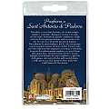 Il blister si presenta con all'interno un cartoncino, rappresentante Sant'Antonio.Sul retro del cartoncino vi è stampata l'immagine della Basilica di Padova.Il Portachiavi è in metallo nichelato, all'interno del quale vi è la figura resinata del Santo.Uno smalto messo a mano attornia l'immagine. Realizzato in Italia.