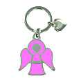 Portachiavi in metallo composto da un ciondolino a forma di cuore e un ciondolo più grosso a forma di angelo, quest'ultimo colorato con smalto rosa. Il prodotto è completamente realizzato in Italia, viene consegnato all'interno della sua scatola trasparente.