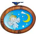 Portachiavi con decina in corda colorata e una medaglia tonda in legno d'ulivo raffigurante l'angioletto con la luna.Realizzato in Italia.*Il legno d'ulivo non è di facile lavorazione in quanto nodoso e duro, ma la fatica nel lavorarlo è ricompensata dalla bellezza delle sue venature che danno a questo legno forme singolari ed un calore unico.