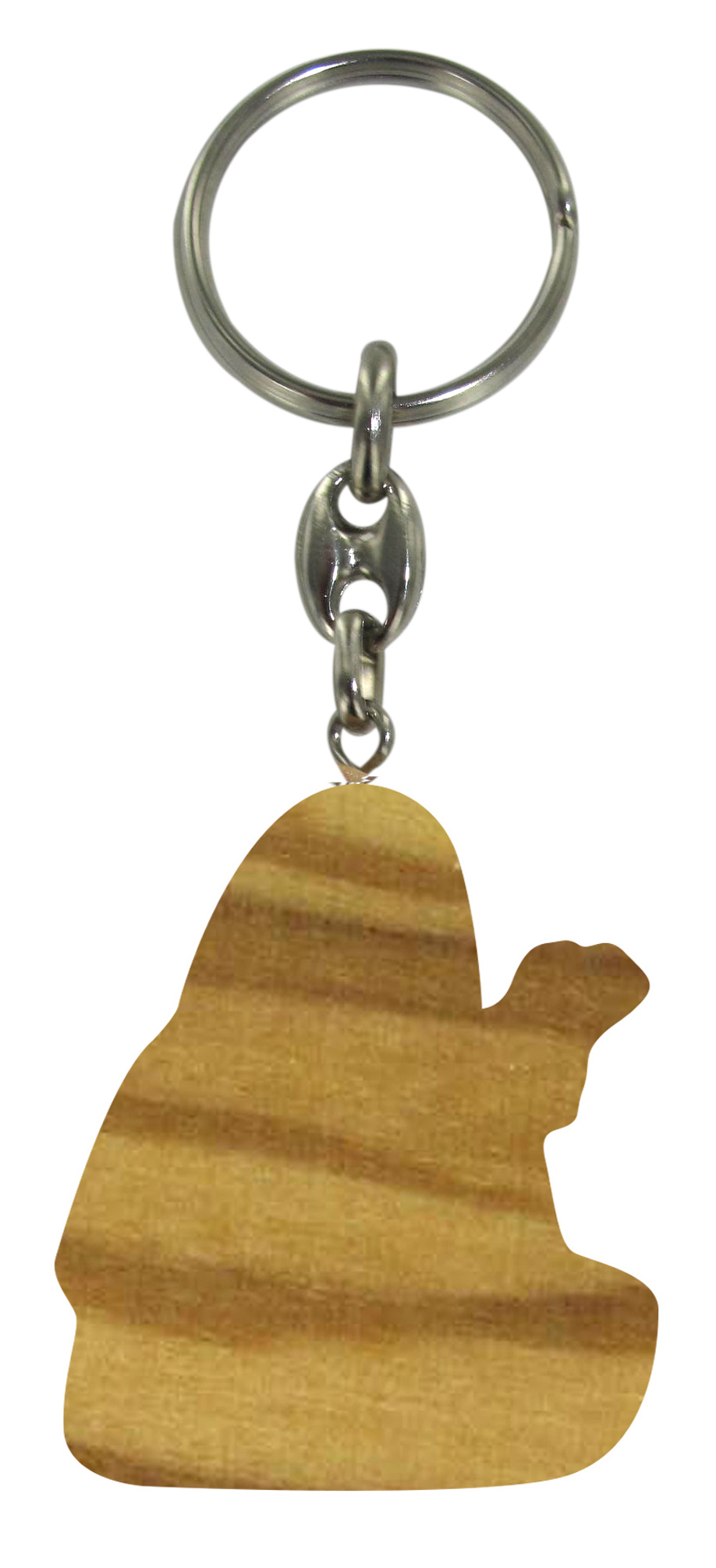 Portachiavi sagomato in legno d'ulivo con l'immagine serigrafata di Santa Rita.Realizzato in Italia.