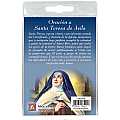 Portachiavi con decina e medaglia realizzato in legno di ulivo raffigurante Santa Teresa d'Avila;l'immagine e' ricoperta da uno strato di resina.La decina ha una legatura in corda colorata.Il Portachiavi è confezionato in un blister con all'interno un immagine di Santa Teresa d'Avila sul cui retro e' stampata una preghiera in spagnolo.Il prodotto è interamente realizzato in italia.
