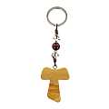 Portachiavi tau in ulivo con colombe in metallo argentato