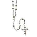Il rosario è in preziosa filigrana, rilegato a mano e con croce e crociera anch'esse in filigrana.La croce senza Cristo misura cm 3,7 e la crociera è a forma di cuore. La lunghezza del rosario è di cm 44 e la circonferenza misura cm 62. ll peso è gr. 11Il rosario è presentato nella scatolina a forma a ventaglio, anch'essa in filigrana e argento 925. La misura è di cm 4. Il peso è di gr. 13Realizzato in Italia.