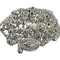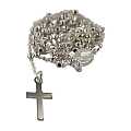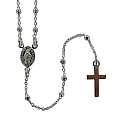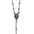 Il rosario ha i grani tondi sfaccettati da 2 mm bloccati sulla catena.La chiusura nel centro dà la possibilità di essere indossato.Il rosario misura cm 32 e la circonferenza di cm 46. Peso: gr. 2.La croce è liscia senza Cristo e misura cm 1 e la crociera stampata che rappresenta la Vergine Miracolosa. Materiale: argento 925Realizzato in Italia.