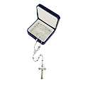 Il rosario è rilegato a mano in argento 925, con grani di 4 mm.La croce è di cm 3 con Cristo stampato e la crociera stampata che rappresenta la Vergine Miracolosa.La lunghezza del rosario è di cm 41 e la circonferenza misura cm 56. Peso: gr 15.Materiale: argento 925Realizzato in Italia.