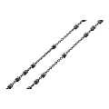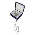 Rosario dai grani a forma di cubetto, bloccati sulla catena. Il tutto è in argento 925 rodiato e ha la chiusura a fianco della crociera che rappresenta la Vergine Miracolosa. La crocetta, con superficie liscia, è una semplice croce, SENZA IL CORPO CROCIFISSO DEL SIGNORE e misura 1 cm d'altezza. La lunghezza del rosario è di cm 80 e la circonferenza di cm 46. Peso: gr. 5. Materiale: argento 925. Realizzato in Italia.