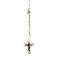 Bracciale Rosario in cloisonnè con 11 grani di diametro 5 mm e croce di altezza 2 cm con base di colore bianco con legatura in metallo.La tecnica artistica del cloisonné è antichissima, addirittura conosciuta nell'antico Egitto, dai Goti e dai Longobardi e consiste nella pittura a mano con smalto di ogni grano e nel contornare ogni elemento con filo metallico brillante. Con questa tecnica sono stati realizzati i fiorellini di colore rosa presenti sui grani e sulla croce. La circonferenza del bracciale rosario è di 15,7 cm. Il prodotto è stato realizzato con particolare attenzione e cura ai dettagli. Peso: 4,5 gr. Realizzato in ITALIA.