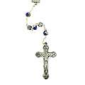 Rosario in cloisonnè con grani tondi da 5 mm di diametro.Legatura fatta a mano con grani rotondi colore blu in metallo smaltato e decorato.Sulla Crociera è visibile da un lato l'immagine della Madonna e dall'altro l'immagine del Sacro cuore di Gesù.Realizzato in Italia.*Il Santo Rosario è stato l'oggetto delle più vigile attenzione e premurosa sollecitudine da parte di tutti i Pontefici, che hanno visto il Rosario come una preghiera contemplativa che è insieme di lode e di supplica, efficace nel promuovere la vita cristiana e l'impegno apostolico. Anche Paolo VI e Giovanni Paolo II più volte hanno rivolto ai cristiani un appello perchè fossero innalzate supplici preghiere alla Beata Vergine del Rosario, per implorare da Dio il bene supremo della pace e il risveglio della vita cristiana.