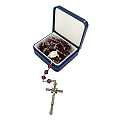Il rosario è rilegato con la speciale lavorazione e girello con crociera stampata rappresentante la Vergine Miracolosa e la croce di cm 5 con Cristo riportato.La lunghezza del rosario è di cm 52 e la circonferenza è di cm 72. Il peso è 29,6 gr.Materiale: argento 925 e cristallo.Realizzato in Italia