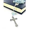Rosario cristallo sfaccettato con grani mm 6 colore acqua marina trasparante legatura in metallo