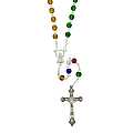 Rosario missionario in semicristallo con diametro 6 mm. Il Rosario missionario ha lo scopo di far pregare per la pace nel mondo e per la conversione di tutti gli uomini. I cinque colori diversi rappresentano i cinque continenti e richiamano l'intenzione secondo la quale si deve pregare. La decina del Rosario, quella bianca è per la vecchia EUROPA, perche' sia capace di riappropriarsi della forza evangelizzatrice che ha generato tante Chiese; la decina gialla è per l'ASIA, che esplode di vita e di giovinezza; la decina verde è per l'AFRICA, provata dalla sofferenza, ma disponibile all'annuncio; la decina rossa è per l'AMERICA, vivaio di nuove forze missionarie; la decina azzurra è per il continente dell'OCEANIA e dell'Australia che attende una più capillare diffusione del Vangelo.