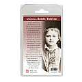 Rosario con grani in semicristallo marrone di millimetri 6 con legatura in metallo.Si presenta confezionato in una scatolina in plastica rigida trasparente al cui interno troviamo un cartoncino con l'immagine di Santa Teresa di Lisieux sul cui retro è stampata una preghiera a lei dedicata.La preghiera è in francese.