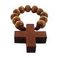 Rosario decina 10 grani in legno tondo legatura seta mm 6- naturale con croce
