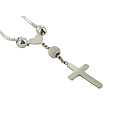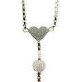 Questo rosario decina ha 10 grani da 3,5 mm di diametro, una piccola crociera a forma di cuore e una crocetta liscia di 1,3 cm: tutto realizzato in argento 925. La catena è di stile veneziano: i vari anelli che la formano, che hanno la forma di un cubo senza due facce, sono collegati tra loro formando una maglia molto bella alla vista. I grani non sono fissati alla catena, sulla quale scorrono e si muovono liberamente. La lunghezza del gioiello è cm 8. Il peso è 2 gr. Realizzato in Italia.