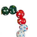 Rosario decina missionaria con grani tondi in legno di mm 7 e legatura in corda bianca. Ogni grano è decorato con dei piccoli fiori e il loro colore rappresentano i cinque continenti. Sulla croce in legno è stampato il Corpo di Cristo in colore argento. Le misure della croce sono 4 cm (A) x 2,5 cm (L).