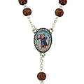 Rosario decina con grani tondi in legno lavorato mm 8 e rilegato in metallo argentato.La perticolarità di questa decina è rappresentato da un moschettone che rende possibile aprirlo.La crocera su fondo in metallo ha un immagine resinata.Tutto made in Italy