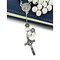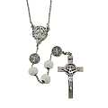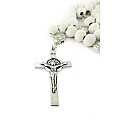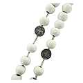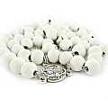 Rosario di San Benedetto in legno tondo bianco diametro 7 mm con Pater e legatura in metallo e chiusura con moschettone