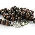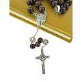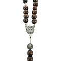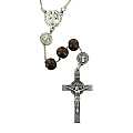 Rosario di San Benedetto in legno tondo marrone diametro 7 mm con Pater e legatura in metallo e chiusura con moschettone