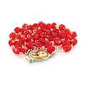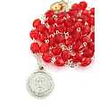 Rosario devozionale del Prezioso Sangue, con legatura a mano in metallo e spiegazione. Grani in plastica rossa e legatura metallica. L'immagine resinata di Gesù completa questo rosario devozionale.