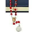 Rosario Prezioso Sangue con Spiegazione e Legatura a Mano, Plastica e Metallo, Rosso