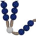 Rosario in plastica, con grani tondi blu e pater bianchi. I grani hanno un diametro di 7,5 mm. Il rosario vanta una legatura in seta e croce in legno. Senza crociera. NON DISPONE DI MOLLETTONE PER L'APERTURA. Circonferenza: 44 cm. Diametro: 22 cm.