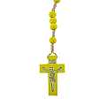Rosario economico in legno tondo giallo diametro mm 7 legatura in seta