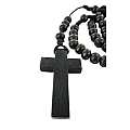 Rosario economico in legno tondo nero diametro mm 7 legatura in seta