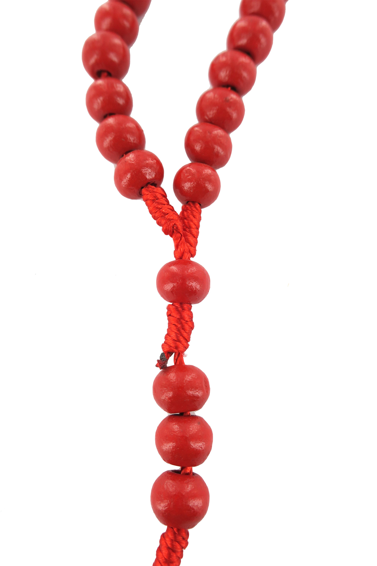 Rosario economico in legno tondo rosso diametro mm 7 legatura in seta