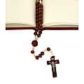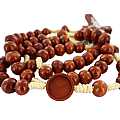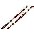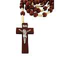 Il rosario con grani in legno tondo di colore naturale è rilegato a mano con seta di colore grezzo.La particolarità di questo rosario è il moschettone che permette di metterlo al collo con facilità.La crocera e la croce sono in legno e su quest'ultima vi è stampato il cristo stilizzato.La lunghezza del rosario è di cm 35.Il peso del rosario è di gr.11