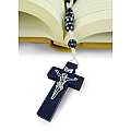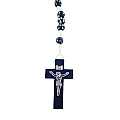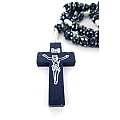 Rosario con grani tondi in legno blu con fiore bianco e giallo e legatura a mano con filo bianco.Ogni grano è di millimetri 7 e sulla croce in legno è impresso il corpo di Cristo in colore argento.Le misure della croce sono:altezza:4 cmlarghezza:2,5 cmQuesto rosario è disponibile anche nei colori giallo,bianco,verde,rosso.