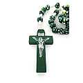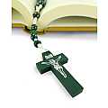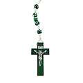 Rosario con grani tondi in legno verde con fiore bianco e giallo e legatura a mano con filo bianco.Ogni grano è di millimetri 7 e sulla croce in legno è impresso il corpo di Cristo in colore argento.Le misure della croce sono:altezza:4 cmlarghezza:2,5 cmQuesto rosario è disponibile anche nei colori blu,bianco,giallo,rosso.