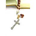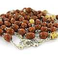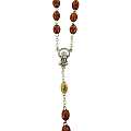 Rosario in legno naturale mm 6 con incisione e legatura in metallo argentato