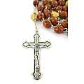 Rosario con grani ovali in legno naturale e pater in legno grezzo 7x8 con legatura in metallo argentato.La particolarità di questo rosario è dato dall'incisione di croci sul grano