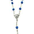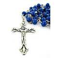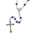 Rosario con legatura fatta a mano con grani rotondi in legno di colore blu. Sulla Crociera è visibile da un lato l'immagine della Madonna di Lourdes e dall'altro l'immagine della Madonna. Il Santo Rosario è stato l'oggetto delle più vigile attenzione e premurosa sollecitudine da parte di tutti i Pontefici, che hanno visto il Rosario come una preghiera contemplativa che è insieme di lode e di supplica, efficace nel promuovere la vita cristiana e l'impegno apostolico. Anche Paolo VI e Giovanni Paolo II più volte hanno rivolto ai cristiani un appello perchè fossero innalzate supplici preghiere alla Beata Vergine del Rosario, per implorare da Dio il bene supremo della pace e il risveglio della vita cristiana.