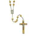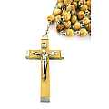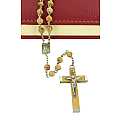 Rosario con legatura fatta a mano con grani rotondi in legno chiaro. Sulla Crociera è visibile da un lato l'immagine della Madonna di Lourdes e dall'altro l'immagine della Madonna. Il Santo Rosario è stato l'oggetto delle più vigile attenzione e premurosa sollecitudine da parte di tutti i Pontefici, che hanno visto il Rosario come una preghiera contemplativa che è insieme di lode e di supplica, efficace nel promuovere la vita cristiana e l'impegno apostolico. Anche Paolo VI e Giovanni Paolo II più volte hanno rivolto ai cristiani un appello perchè fossero innalzate supplici preghiere alla Beata Vergine del Rosario, per implorare da Dio il bene supremo della pace e il risveglio della vita cristiana.