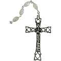 Rosario rilegato a mano in argento con lavorazione classica e grano ovale del diametro di 6 mm. La croce misura cm 5,5 con Cristo riportato e la crociera è stampata con la Vergine Miracolosa.La lunghezza del Rosario è di cm 54 e la circonferenza è di cm 74.Peso: 35 gr.Il rosario è totalmente made in Italy Materiale: argento e madreperla