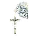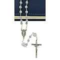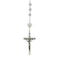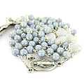 Rosario imitazione pietra luna mm 5 con pater conchiglia e legatura in ottone argentato
