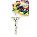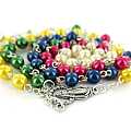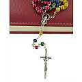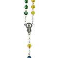 Rosario missionario con grani tondi in plastica di mm 6 legato in metallo argentato.I cinque colori diversi rappresentano i cinque continenti e richiamano l'intenzione secondo la quale si deve pregare. La decina del Rosario, quella bianca è per la vecchia EUROPA, perche' sia capace di riappropriarsi della forza evangelizzatrice che ha generato tante Chiese; la decina gialla è per l'ASIA, che esplode di vita e di giovinezza; la decina verde è per l'AFRICA, provata dalla sofferenza, ma disponibile all'annuncio; la decina rossa è per l'AMERICA, vivaio di nuove forze missionarie; la decina azzurra è per il continente dell'OCEANIA e dell'Australia che attende una più capillare diffusione del Vangelo