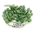Il rosario è in legatura a mano con filo di metallo argentato, e i grani di mm 6 sono in vera aventurina verde. Croce con Cristo riportato e crociera ovale con Madonnina pregante e su retro di essa vi è il Sacro Cuore di Gesù.La croce con Cristo misura cm 4 la crociera con Volto di Maria misura cm 1,5La lunghezza del rosario è di cm 48 e la circonferenza è di cm 64.Peso: 30 gr.Materiale: aventurinaTutto completamente made in Italy.