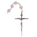 Rosario in argento con grani in quarzo rosa da Ø 6 mm