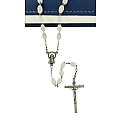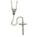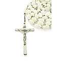 Rosario con legatura a macchina con grani ovali in plastica di colore bianco. Sulla Crociera è visibile da un lato l'immagine della Madonna e dall'altro l'immagine del Sacro cuore di Gesù. Il prodotto è completamente realizzato in Italia. Il Santo Rosario è stato l'oggetto delle più vigile attenzione e premurosa sollecitudine da parte di tutti i Pontefici, che hanno visto il Rosario come una preghiera contemplativa che è insieme di lode e di supplica, efficace nel promuovere la vita cristiana e l'impegno apostolico. Anche Paolo VI e Giovanni Paolo II più volte hanno rivolto ai cristiani un appello perchè fossero innalzate supplici preghiere alla Beata Vergine del Rosario, per implorare da Dio il bene supremo della pace e il risveglio della vita cristiana.