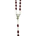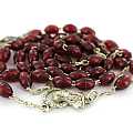 Rosario con legatura a macchina con grani ovali in plastica di colore rosso granato. Sulla Crociera è visibile da un lato l'immagine della Madonna e dall'altro l'immagine del Sacro cuore di Gesù. Il prodotto è completamente realizzato in Italia. Il Santo Rosario è stato l'oggetto delle più vigile attenzione e premurosa sollecitudine da parte di tutti i Pontefici, che hanno visto il Rosario come una preghiera contemplativa che è insieme di lode e di supplica, efficace nel promuovere la vita cristiana e l'impegno apostolico. Anche Paolo VI e Giovanni Paolo II più volte hanno rivolto ai cristiani un appello perchè fossero innalzate supplici preghiere alla Beata Vergine del Rosario, per implorare da Dio il bene supremo della pace e il risveglio della vita cristiana.