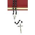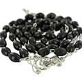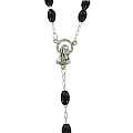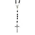 Rosario con legatura a macchina con grani ovali in plastica di colore nero. Sulla Crociera è visibile da un lato l'immagine della Madonna e dall'altro l'immagine del Sacro cuore di Gesù. Il prodotto è completamente realizzato in Italia. Il Santo Rosario è stato l'oggetto delle più vigile attenzione e premurosa sollecitudine da parte di tutti i Pontefici, che hanno visto il Rosario come una preghiera contemplativa che è insieme di lode e di supplica, efficace nel promuovere la vita cristiana e l'impegno apostolico. Anche Paolo VI e Giovanni Paolo II più volte hanno rivolto ai cristiani un appello perchè fossero innalzate supplici preghiere alla Beata Vergine del Rosario, per implorare da Dio il bene supremo della pace e il risveglio della vita cristiana.
