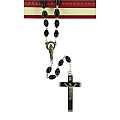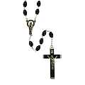 Rosario con legatura a macchina con grani ovali in plastica di colore nero. Sulla Crociera è visibile l'immagine della Madonna di Lourdes. Il prodotto è completamente realizzato in Italia. Il Santo Rosario è stato l'oggetto delle più vigile attenzione e premurosa sollecitudine da parte di tutti i Pontefici, che hanno visto il Rosario come una preghiera contemplativa che è insieme di lode e di supplica, efficace nel promuovere la vita cristiana e l'impegno apostolico. Anche Paolo VI e Giovanni Paolo II più volte hanno rivolto ai cristiani un appello perchè fossero innalzate supplici preghiere alla Beata Vergine del Rosario, per implorare da Dio il bene supremo della pace e il risveglio della vita cristiana.