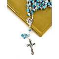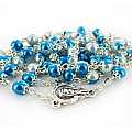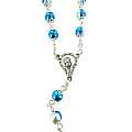 Rosario bianco e azzurro effetto similperla 6 mm con catena in metallo e perline doppio colore