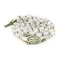 Rosario imitazione madreperla mm. 4 con legatura in ottone argentato - bianco