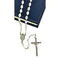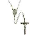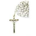 Rosario imitazione madreperla mm 4 legatura ottone argentato bianco