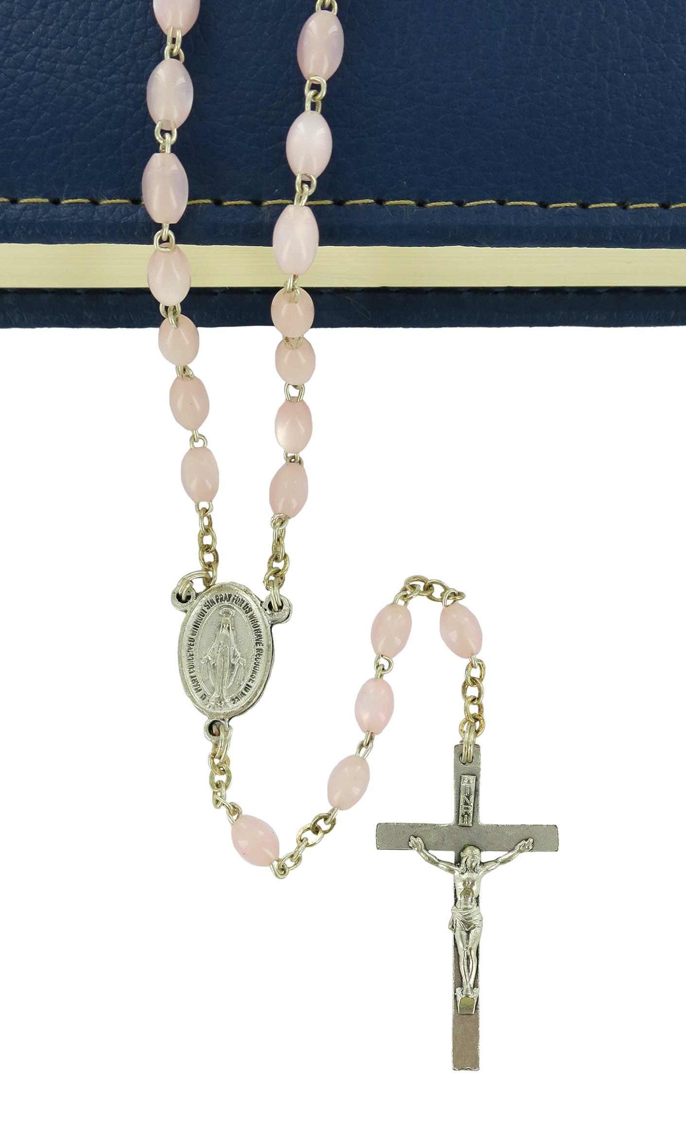 Rosario imitazione madreperla mm 4 legatura ottone argentato rosa